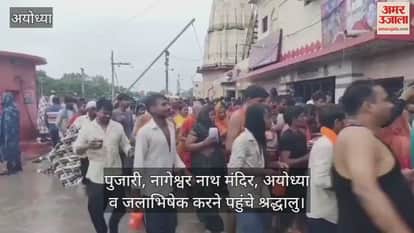 VIDEO: भारी बारिश के बीच रामनगरी में उमड़ा आस्था का जनसैलाब, नागेश्वर नाथ मंदिर में दर्शन-पूजन का दौर जारी