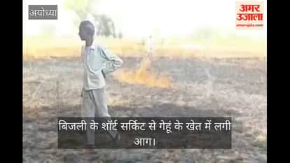 VIDEO: बिजली के शॉर्ट सर्किट से गेहूं के खेत में लगी आग, किसान की करीब डेढ़ बीघा फसल जलकर नष्ट