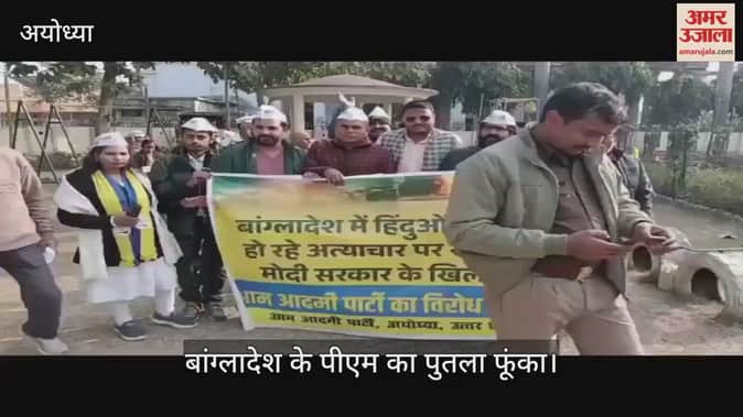 VIDEO: हिंदुओं की हत्या के खिलाफ आम आदमी पार्टी ने बांग्लादेश के प्रधानमंत्री का पुतला फूंका
