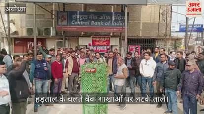 VIDEO: हड़ताल के चलते बैंक शाखाओं पर लटके ताले, अफसर और कर्मियों ने किया प्रदर्शन