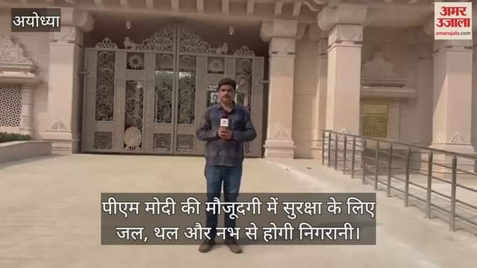 राम मंदिर के ध्वजारोहण समारोह में 25 नवंबर को प्रधानमंत्री नरेंद्र मोदी की मौजूदगी को देखते हुए सुरक्षा के लिए अयोध्या में जल, थल और नभ से निगरानी की जाएगी। राम मंदिर के जिस जगद्गुरु आदि शंकराचार्य प्रवेश द्वार से प्रधानमंत्री जाएंगे, वहां पर अत्याधुनिक बोलार्ड सिस्टम लगा दिया गया है। इसके माध्यम से किसी भी अनाधिकृत वाहन को तेज गति से प्रवेश करने या बाहर जाने से रोका जा सकेगा। इतना ही नहीं एसपीजी, एनएसजी, एटीएस सीआरपीएफ, एसएसएफ, पीएसी और यूपी पुलिस की ओर से अलग-अलग सात स्तरीय सुरक्षा घेरा तैयार किया जाएगा। सरयू नदी में जल पुलिस निगरानी करेगी। राम मंदिर का एंटी ड्रोन सिस्टम एक्टिव रहेगा। 1000 सीसीटीवी कैमरे राम मंदिर के आसपास निगहबानी करेंगे। प्रधानमंत्री के आने के पहले से ही सुरक्षा और सजगता की कवायद शुरू हो गई है। बम डिस्पोजल स्कवॉयड और डॉग स्कवॉयड निरंतर राम मंदिर के आसपास छानबीन कर रहे हैं। कुल मिलाकर पीएम मोदी की मौजूदगी में अयोध्या में अभूतपूर्व सुरक्षा व्यवस्था प्रभावी की जाएगी।