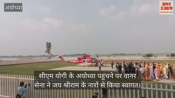 VIDEO: सीएम योगी के अयोध्या पहुंचने पर वानर सेना ने जय श्रीराम के नारों से किया स्वागत
