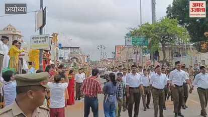 अयोध्या में बृहस्पतिवार को विजयदशमी के पावन अवसर पर राष्ट्रीय स्वयंसेवक संघ का भव्य पथ संचलन आयोजित किया गया। यह यात्रा समरसता और सामाजिक सद्भाव का संदेश लेकर रामकथा पार्क से प्रारंभ हुई। हजारों स्वयंसेवकों की अनुशासित टुकड़ियों ने भगवा ध्वज के साथ जब नगर भ्रमण शुरू किया तो पूरा वातावरण देशभक्ति के नारों से गूंज उठा।