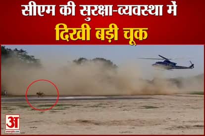 आजमगढ़ में सीएम योगी आदित्यनाथ की सुरक्षा-व्यवस्था में बड़ी चूक सामने आई। पुलिस लाइन में हेलीपैड पर हेलीकॉप्टर के उतरते समय घुसा पशु। सुरक्षाकर्मियों ने किसी तरह वहां से भगाकर किया दूर। जिले में मुख्यमंत्री ने कोरोना रोकने की तैयारियों की समीक्षा की। कंटेनमेंट जोन में लोगों से की बात, इंटीग्रेटेड कोविड कंट्रोल रूम का निरीक्षण किया।