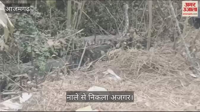 VIDEO : नाले से निकले अजगर को देखने के लिए जुटी भीड़
