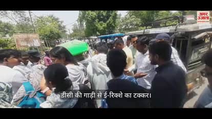 VIDEO : आजमगढ़ में डीसी की गाड़ी से टकराया ई-रिक्शा, घंटों चला ड्रामा