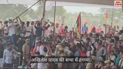 VIDEO : अखिलेश की जनसभा में हंगामा, कार्यकर्ताओं ने फाड़े पर्दे; पुलिस पर फेंके पत्थर