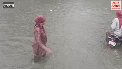 Baghpat: दिल्ली-सहारनपुर हाईवे पर भारी जलभराव, एक किमी लंबा जाम