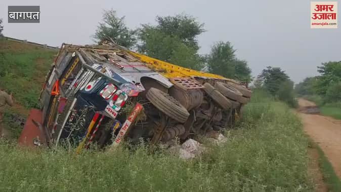 Baghpat: ईस्टर्न पेरिफेरल एक्सप्रेस वे पर सेब से भरा ट्रक पलटा, चालक और हेल्पर घायल