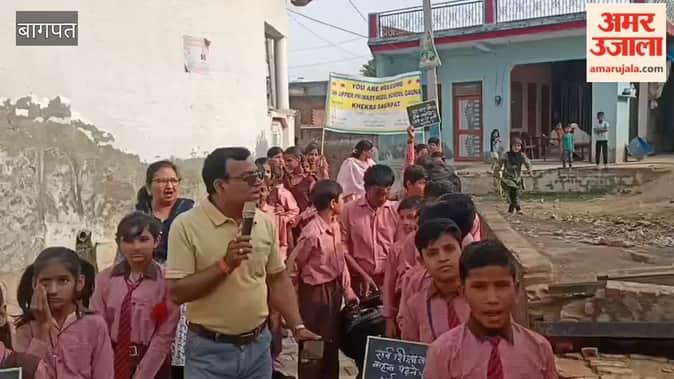 बागपत: स्कूल चलो अभियान के तहत बच्चो ने रैली निकाल कर ग्रामीणों को किया जागरूक