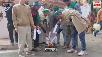 VIDEO : बागपत में भाकियू ने जलाई कृषि नीति की प्रतियां, जमकर नारेबाजी, बोले- किसानों का हो रहा शोषण