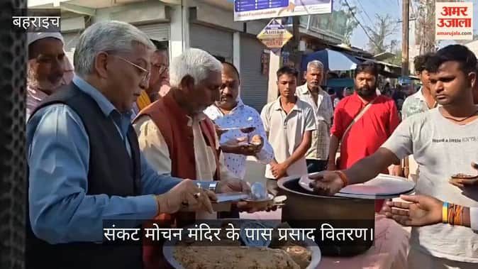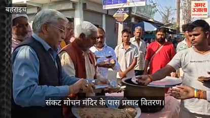 बहराइच के रूपईडीहा में रामनवमी पर संकट मोचन मंदिर के पास प्रसाद वितरण