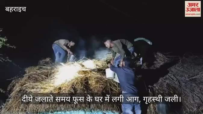 बहराइच में दीये जलाते समय फूस के घर में लगी आग, गृहस्थी का सामान जला