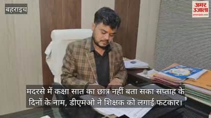यूपी के बहराइच में मदरसे में कक्षा सात का छात्र सप्ताह के सातों दिनों के नाम नहीं बता पाया। इस पर डीएमओ ने शिक्षक को कड़ी फटकार लगाई। दरअसल, महसी इलाके के दारुल उलूम अशरफिया हस्मतुरर्जा मदरसे का जिला अल्पसंख्यक कल्याण अधिकारी संजय मिश्र ने औचक निरीक्षण किया। वह मदरसा शिक्षा की बिगड़ती व्यवस्था पर जमकर बिफरे। 92 हजार सैलरी पाने वाले मदरसा शिक्षक को कड़ी चेतावनी दी।