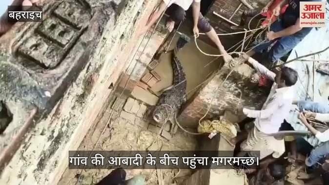 बहराइच के नानपारा कोतवाली इलाके के भोपतपुर बेलवा गांव में एक मगरमच्छ नदी से निकलकर आबादी के बीच पहुंच गया। इससे ग्रामीणों में दहशत फैल गई। वन विभाग की टीम ने मगरमच्छ को पकड़ा रेस्क्यू कर नदी में छोड़ दिया।