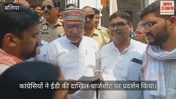 Congress workers took out a march in Ballia on the charge sheet filed by ED demonstrated and raised their demands
