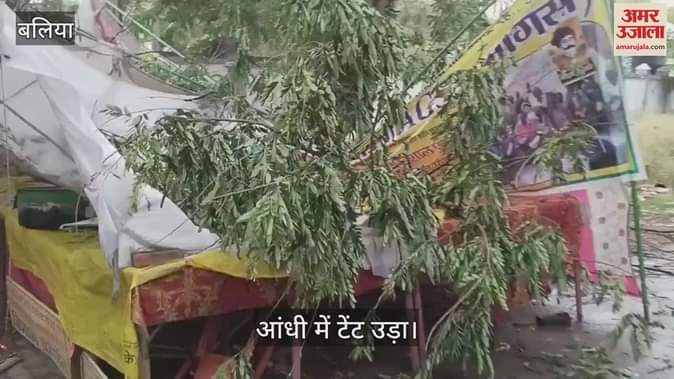 VIDEO : बलिया में धरना दे रहे लोगों पर आंधी का प्रभाव, उजड़ गया टेंट, डटे रहे आंदोलनकारी