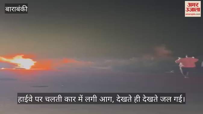 बाराबंकी में हाईवे पर चलती कार में लगी आग, देखते ही देखते जल गई