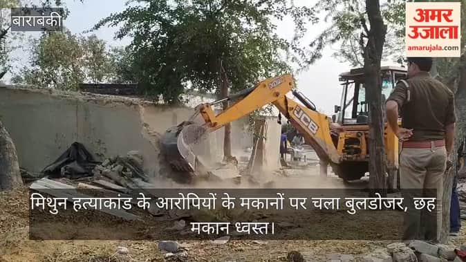 यूपी के बाराबंकी में मिथुन रावत हत्याकांड में नामजद आरोपियों के घरों सोमवार को प्रशासन का बुलडोजर चला। पुलिस बल की मौजूदगी में तहसील प्रशासन ने दुर्री पुरवा गांव पहुंचकर आरोपियों के अवैध रूप से बने मकानों को जेसीबी से ध्वस्त कर दिया। कार्रवाई के दौरान गांव में भारी पुलिस बल तैनात रहा।