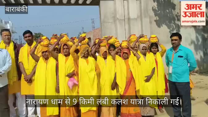 बाराबंकी में नारायण धाम से 9 किमी लंबी कलश यात्रा निकाली गई