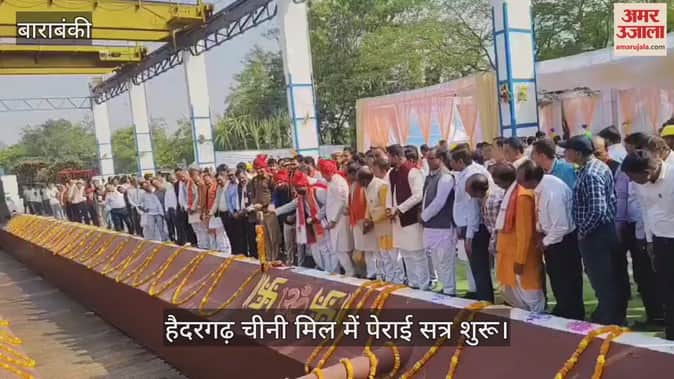 बाराबंकी के हैदरगढ़ चीनी मिल में विधायक दिनेश रावत, डीएम शशांक त्रिपाठी एसपी अर्पित विजयवर्गीय ने डोंगा में गन्ना छोड़ कर पेराई सत्र शुरू किया। इससे पहले विधिवत पूजा अर्चना की गई। इस मौके पर गन्ना लेकर पहुंचे किसान को अंगवस्त्र देकर सम्मानित किया गया।