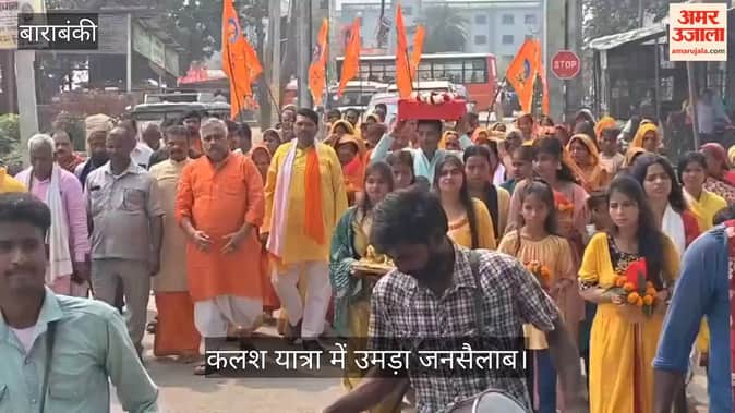 बाराबंकी। कोटवाधाम कस्बे में रविवार को भक्ति और आस्था का अद्भुत संगम देखने को मिला। कृष्णा गौशाला में आयोजित होने वाली श्रीमद्भागवत कथा से पहले भव्य कलश यात्रा निकाली गई, जिसमें सैकड़ों श्रद्धालु शामिल हुए। सिर पर कलश धारण किए महिलाएं और युवतियां डीजे की भक्ति धुनों पर नाचते-गाते हुए कथा स्थल से समर्थ साहेब जगजीवन दास के पवित्र अभरण सरोवर तक पहुंचीं। पूरे मार्ग में भक्तिमय माहौल बना रहा। संवाद