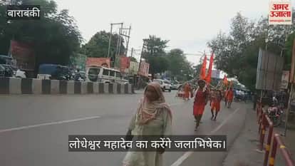 कजरी तीज (हरतालिका) पर कांवड़ लेकर लोधेश्वर महादेवा पहुंच रहे कांवडियां। बाराबंकी जिले के निवासी शिवभक्त गंगा नदी के बिठूर घाट से जल भरकर लौट रहे। लोधेश्वर महादेव का जलाभिषेक करेंगे।