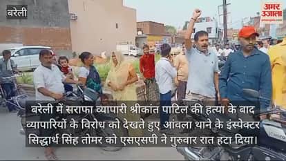 बरेली में सराफा व्यापारी श्रीकांत पाटिल की हत्या के बाद व्यापारियों के विरोध को देखते हुए आंवला थाने के इंस्पेक्टर सिद्धार्थ सिंह तोमर को एसएसपी ने गुरुवार रात हटा दिया। उन्हें मीरगंज इंस्पेक्टर बनाया गया है। मीरगंज इंस्पेक्टर कुंवर बहादुर सिंह अब आंवला कोतवाल की जिम्मेदारी देखेंगे। एसएसपी अनुराग आर्य ने एसपी उत्तरी मुकेश चंद्र मिश्रा से आंवला इंस्पेक्टर की भूमिका की जांच कराई थी। प्रारंभिक तौर पर स्थानीय स्तर की खींचतान सामने आई। तब एसएसपी ने सिद्धार्थ को वहां से हटाकर मीरगंज कोतवाल बना दिया, जबकि लंबे समय से मीरगंज कोतवाल कुंवर बहादुर सिंह को आंवला कोतवाल बनाया।