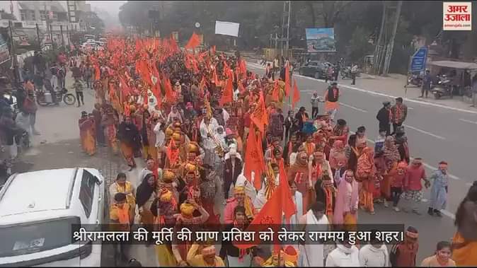 VIDEO : भगवा छटा, पुष्पवर्षा और जयकारे अविराम, बरेली शहर में गूंजा जय श्रीराम