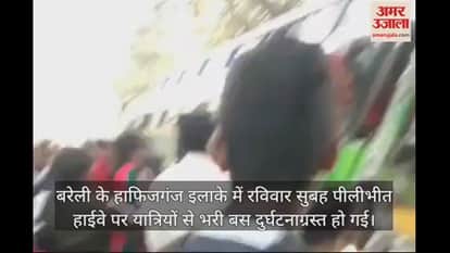 बरेली के हाफिजगंज इलाके में रविवार सुबह पीलीभीत हाईवे पर यात्रियों से भरी बस दुर्घटनाग्रस्त हो गई। बहराइच से रोहतक जा रही निजी बस भूसी से भरे ट्रक को बचाने के प्रयास में अनियंत्रित होकर खंती में जाकर पेड़ से जा टकराई। घटना के बाद चीखपुकार मच गई। बस में 190 लोग सवार थे। राहगीरों ने पुलिस की मदद से शीशे तोड़कर बस में फंसी सवारियों को बाहर निकाला। करीब 20 से लोग घायल हुए हैं, जिन्हें एंबुलेंस से बरेली भिजवाया। हादसे के बाद गुस्साए लोगों ने बस में तोड़फोड़ भी की।