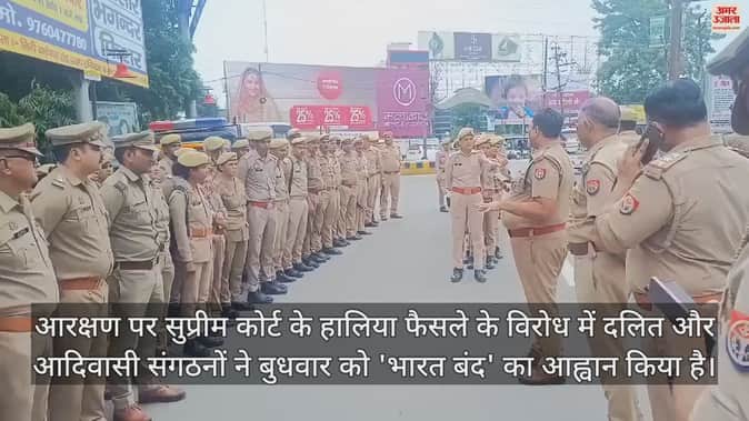 आरक्षण पर सुप्रीम कोर्ट के हालिया फैसले के विरोध में दलित और आदिवासी संगठनों ने बुधवार को 'भारत बंद' का आह्वान किया है। इसको देखते हुए बरेली जिले में भी हाई अलर्ट जारी किया गया है। एसएसपी ने 175 प्वाइंट पर पुलिस की ड्यूटी लगाई है। 200 रिक्रूट भी पुलिस की मदद में अलग से तैनात किए गए हैं। एसएसपी अनुराग आर्य ने अलर्ट घोषित कर दिया है। बाजार में निगरानी को 100 गाड़ियों की व्यवस्था भी की गई है। जिले में एक कंपनी पीएसी, एक कंपनी आरएफ, 18 क्यूआरटी तैनात की है। एसएसपी ने कहा कि कोई भी दुकानदारों पर जबरन दुकान या प्रतिष्ठान बंद करने का दवाब बनाएगा तो उसके खिलाफ कारवाई की जाएगी। हालांकि शहर से लेकर देहात तक भारत बंद का असर नहीं दिख रहा है। रोज की तरह दुकानें और बाजार खुली हैं।