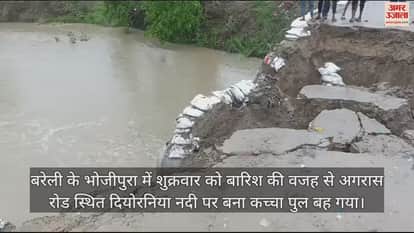 VIDEO : बरेली के भोजीपुरा में बारिश की वजह से कच्चा पुल बहा, कई गांवों का रास्ता बाधित