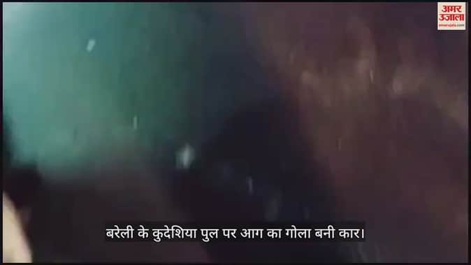 VIDEO : बरेली के कुदेशिया पुल पर आग का गोला बनी कार, पिता-पुत्र बाल-बाल बचे