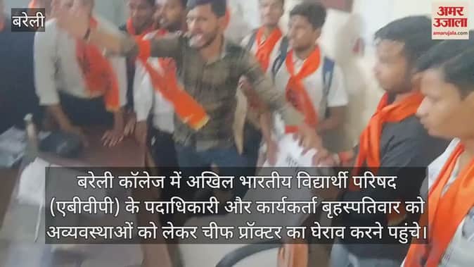बरेली कॉलेज में अखिल भारतीय विद्यार्थी परिषद (एबीवीपी) के पदाधिकारी और कार्यकर्ता बृहस्पतिवार को अव्यवस्थाओं को लेकर चीफ प्रॉक्टर का घेराव करने पहुंचे। मौके पर मौजूद न होने पर उनकी कुर्सी पर लापता का पोस्टर लगा दिया। कॉलेज प्रशासन मुर्दाबाद के नारे लगाकर लौट गए। एबीवीपी ने पांच दिन में व्यवस्थाएं दुरुस्त न होने पर आंदोलन करने की चेतावनी दी है।