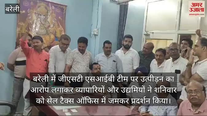 VIDEO : बरेली में जीएसटी की एसआईबी टीम पर उत्पीड़न का आरोप, व्यापारियों का सेल टैक्स ऑफिस में प्रदर्शन