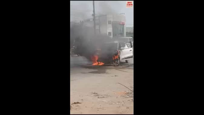 VIDEO : बरेली में पीलीभीत बाईपास पर चलती कार बनी आग का गोला