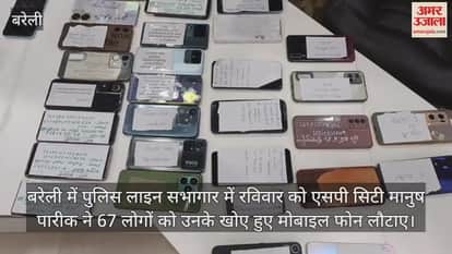 बरेली में पुलिस लाइन सभागार में रविवार को एसपी सिटी मानुष पारीक ने 67 लोगों को उनके खोए हुए मोबाइल फोन लौटाए। एसपी सिटी ने बताया कि समय-समय पर लोगों के गुम हुए मोबाइल फोन के बारे में शिकायतें मिली थीं। इन्हें सर्विलांस टीम के हवाले किया गया था। सीईआईआर पोर्टल पर भी लापता मोबाइल फोन की डिटेल डालकर सर्च किया गया था। 67 मोबाइल फोन तलाशे गए। अपना खोया मोबाइल फोन पाकर लोग खुश हुए। एसएसपी ने सर्वाधिक 11 मोबाइल फोन तलाशने पर इज्जतनगर थाने के आरक्षी विपिन कुमार को 1100 रुपये, कैंट थाने के आरक्षी अजय कुमार को 700 रुपये, कोतवाली की कांस्टेबल रीमा यादव को 400 रुपये, प्रेमनगर के आरक्षी रंजन शर्मा को 400 रुपये का पुरस्कार व सभी को प्रशस्तिपत्र देने की घोषणा की है।
