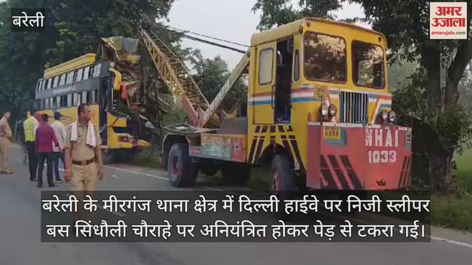 VIDEO : बरेली में दिल्ली हाईवे पर पेड़ से टकराई स्लीपर बस, एक यात्री की मौत, 12 घायल