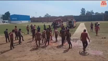VIDEO : बरेली पुलिस लाइन में जवानों ने जमकर खेली होली, थानों में भी उड़ा रंग-गुलाल
