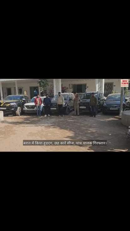 चौधरी तालाब निवासी सोफियान नाम के युवक की रविवार रात आरिश लॉन में बरात थी। रात 12 बजे किला इलाके से करीब 25 कारों और 15 बाइक से दोस्तों ने दूल्हे की बरात निकाली। सनरूफ से सिर निकालकर और दरवाजों से लटककर लड़कों ने रैली निकालकर हुडदंग किया। आतिशबाजी छोड़ी और धमाल किया। रात में ही सूचना मिलने पर बारादरी थाना प्रभारी अमित पांडेय ने आरिश लॉन में छापा मारा। वहां से पांच ड्राइवर पकड़ लिए और छह लक्जरी कारें लाकर थाने में सीज कर दी।