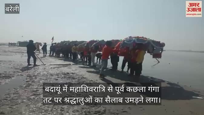 बदायूं में महाशिवरात्रि से पूर्व कछला गंगा तट पर श्रद्धालुओं का सैलाब उमड़ने लगा। जल भरने के लिए कंधे पर कांवड़ लेकर श्रद्धालुओं की टोली पहुंचने लगी। मंगलवार सुबह श्रद्धालुओं ने हर हर महादेव के जयघोष के साथ गंगा में आस्था की डुबकी लगाई।