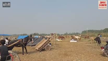 बरेली के रामगंगा चौबारी मेले में पुष्कर से आए घोड़े, खरीदारों को कर रहे आकर्षित