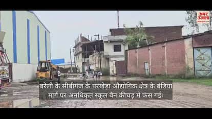बरेली के सीबीगंज के परखेड़ा औद्योगिक क्षेत्र के बंडिया मार्ग पर अनधिकृत स्कूल वैन कीचड़ में फंस गई। इसे निकालने के लिए छात्र-छात्राओं को कीचड़ में उतरकर वैन में धक्का लगाना पड़ा। धक्का लगाने के दौरान कई विद्यार्थी कीचड़ में गिर गए, जिसके कारण उनकी यूनिफॉर्म खराब हो गई। बता दें कि बंडिया मार्ग काफी जर्जर है। कई स्थानों पर बड़े-बड़े गड्ढे हो गए हैं। बारिश के दिनों में इन गड्ढों में बारिश का पानी और कीचड़ जमा हो गया है।