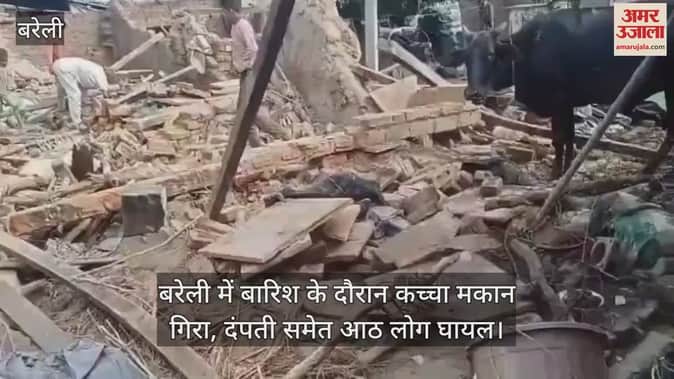 बरेली में बारिश के दौरान कच्चा मकान गिरा, दंपती समेत आठ लोग घायल