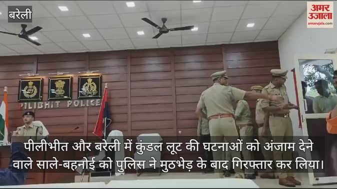 पीलीभीत और बरेली में कुंडल लूट की घटनाओं को अंजाम देने वाले साले-बहनोई को पुलिस ने मुठभेड़ के बाद गिरफ्तार कर लिया। उनकी निशानदेही पर लूट का माल खरीदने वाले दो लोगों को गिरफ्तार करने के साथ कुंडल भी बरामद किए गए। एसपी अविनाश पांडेय ने बृहस्पतिवार को घटनाओं का खुलासा किया। एसपी ने बताया कि जनपद के बीसलपुर, बरखेड़ा, दियोरिया, गजरौला और सुनगढ़ी क्षेत्र में कुंडल लूट की घटनाओं को अंजाम दिया गया था। जिसके बाद घटना के खुलासे के लिए एसओजी समेत पुलिस की 20 टीमों को लगाया गया था। सीसीटीवी फुटेज के जरिए लुटेरों की पहचान हुई। जिसके बाद उनकी धरपकड़ के प्रयास किए जा रहे थे। बृहस्पतिवार को बीसलपुर क्षेत्र से दोनों साले-बहनोई को गिरफ्तार किया गया। पकड़े दो लुटेरों में मुख्य आरोपी बरखेड़ा के गांव खमरिया पंडरी निवासी दिलशाद उर्फ झंडू और उसका साला बुलंदशहर के गांव छतरी निवासी नूर मोहम्मद शामिल है। कुंडल लूटने के बाद दोनों बरखेड़ा के पौटा कला गांव में तौहीद व अफजल हुसैन को बेचते थे। पुलिस ने दोनों व्यापारियों को भी गिरफ्तार किया है।