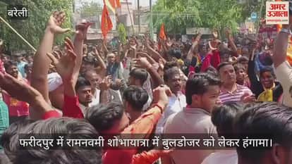बरेली के फरीदपुर में रामनवमी शोभायात्रा के दौरान सोमवार को हंगामा हो गया। शोभायात्रा में शामिल बुलडोजर को नई परंपरा बताकर पुलिस ने रोक दिया, जिससे रामलीला कमेटी के लोग भड़क गए। आंवला के भाजपा जिलाध्यक्ष आदेश प्रताप सिंह व कमेटी के लोगों की अफसरों से नोकझोंक हुई। काफी देर तक हंगामा होता रहा। आखिरकार पुलिस प्रशासन को झुकना पड़ा। बुलडोजर निकालने की सहमति पर मामला शांत हुआ।