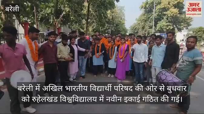 बरेली में अखिल भारतीय विद्यार्थी परिषद की ओर से बुधवार को रुहेलखंड विश्वविद्यालय में नवीन इकाई गठित की गई। इसमें इकाई अध्यक्ष पद का दायित्व अमृतांश केसरवानी और इकाई मंत्री पद का दायित्व दीपान्शु चौधरी को दिया गया। कार्यक्रम गठन के बाद छात्रनेताओं ने अध्यक्ष और मंत्री को परिसर में घुमाया। जहां कार्यकर्ताओं ने उनका फूल माला पहनाकर स्वागत किया। यहां अतिशबाजी के साथ प्रशासनिक भवन तक रैली निकाली गई। इस दौरान एबीवीपी महानगर अध्यक्ष डॉ. विकास शर्मा, महानगर मंत्री आनंद कठेरिया, विभाग संगठन मंत्री अवनी यादव, श्रेयांश वाजपई, हर्षित चौधरी, लकी शर्मा, लक्ष्य, हर्षवर्धन, सौम्या, पवन, स्पर्श, प्रियंका आदि कार्यकर्ता उपस्थित रहे।