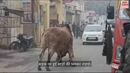 बरेली में सांड़ों का आतंक थम नहीं रहा है। सोमवार को ईसाइयों की पुलिया के पास सड़क पर दो सांड़ों भिड़ गए, जिससे लोगों में अफरातफरी मच गई। दोनों सांड़ लड़ते हुए एक कार से जा टकराए, जिससे कार की हेडलाइट टूट गई। आसपास खड़े लोगों ने भागकर खुद को बचाया। करीब पांच मिनट तक दोनों सांड़ लड़ते रहे। लोगों ने डंडे फटकार कर किसी तरह सांड़ों को भगाया। घटना पर मौजूद लोगों का कहना था कि सड़कों पर घूम रहे सांड़ खतरे का सबब बने हुए हैं। 24 जनवरी को संजयनगर में सांड़ के हमले से एक बुजुर्ग की मौत भी हो चुकी है।