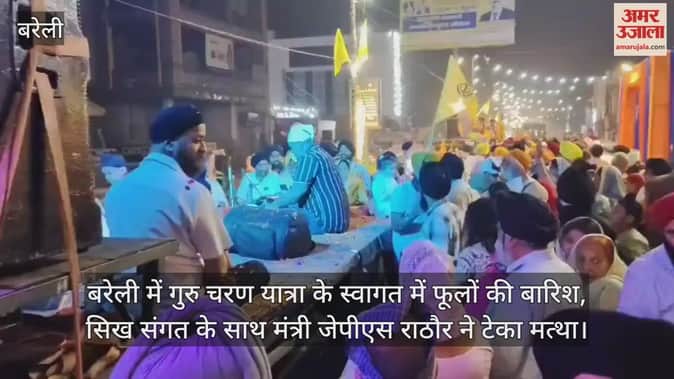 बरेली में गुरु चरण यात्रा के स्वागत में फूलों की बारिश, सिख संगत के साथ मंत्री जेपीएस राठौर ने टेका मत्था