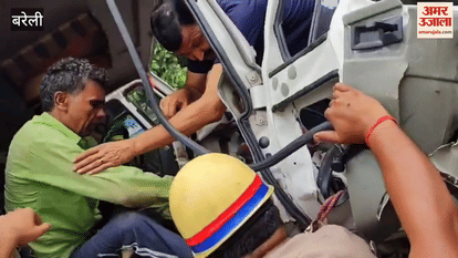 बरेली में हाईवे पर जेसीबी से टकराया ट्रक, स्टीयरिंग और सीट के बीच फंसा चालक